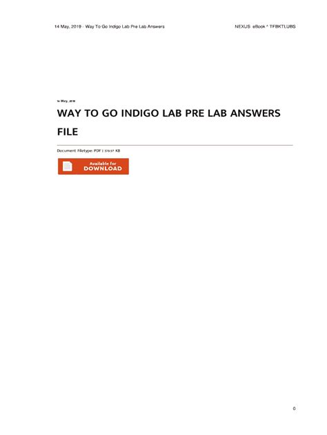 0 Response to "Download Way To Go Indigo Lab Pre Lab Answers mobipocket"